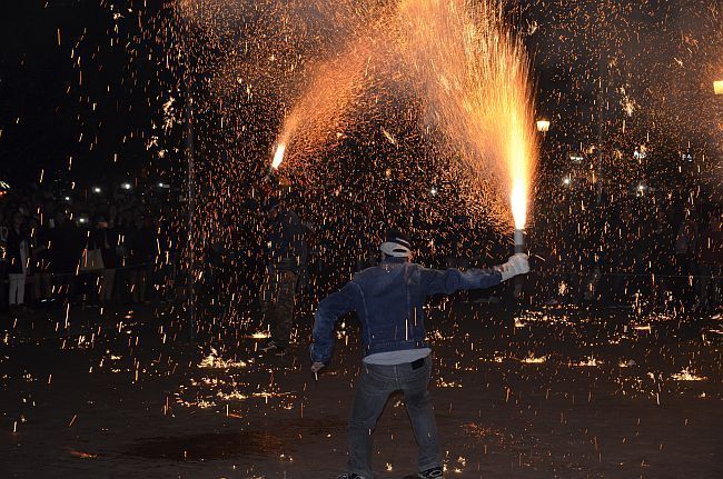 Το έθιμο των χαλκουνιών αναβίωσε μετά την σύναξη των επιταφίων στην πλατεία Δημοκρατίας και εντυπωσίασε μικρούς και μεγάλους που από νωρίς είχαν συγκεντρωθεί για να απολαύσουν το φαντασμαγορικό αυτό θέαμα.