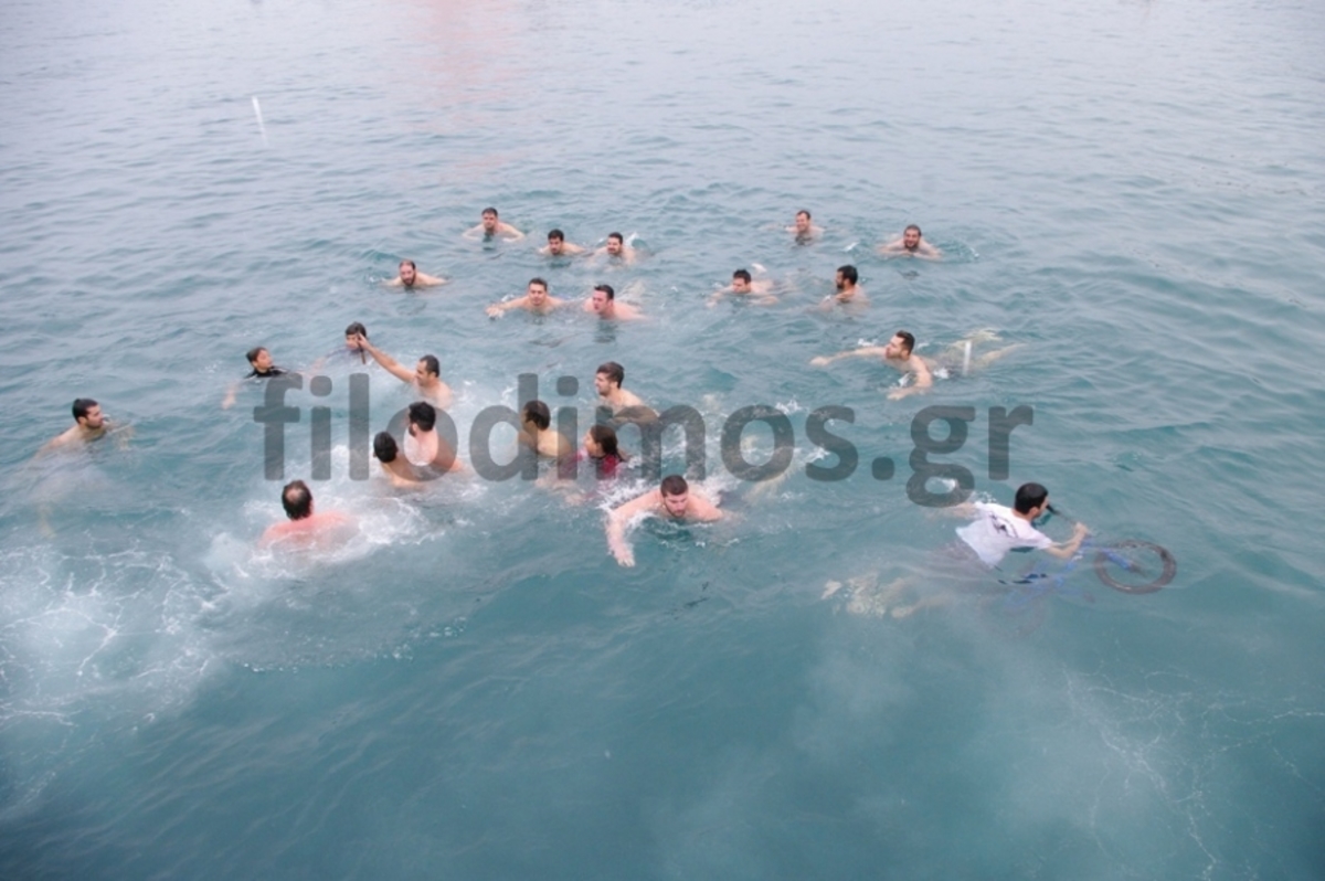 Περίπου 20 αγόρια κάθε ηλικίας (και ένα κορίτσι) αψήφησαν το κρύο και έπεσαν στη θάλασσα για να λάβουν την ευλογία του Τιμίου Σταυρού. Μάλιστα, μέσα στη θάλασσα έπεσε με το…ποδήλατό του (!) και ένας νεαρός, σε μια κίνηση που αν μη τι άλλο, εντυπωσίασε.