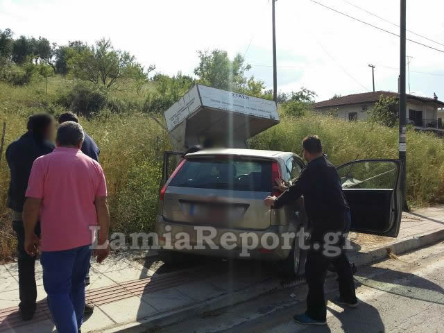 Το αυτοκίνητο χτύπησε στο πεζοδρόμιο και στη συνέχεια έκανε περιστροφή και καρφώθηκε στη στάση που υπάρχει στο σημείο.