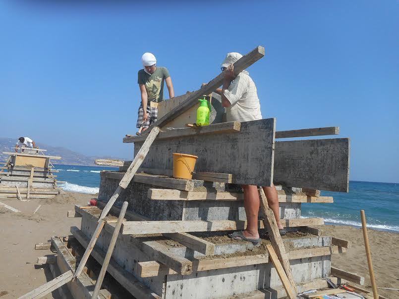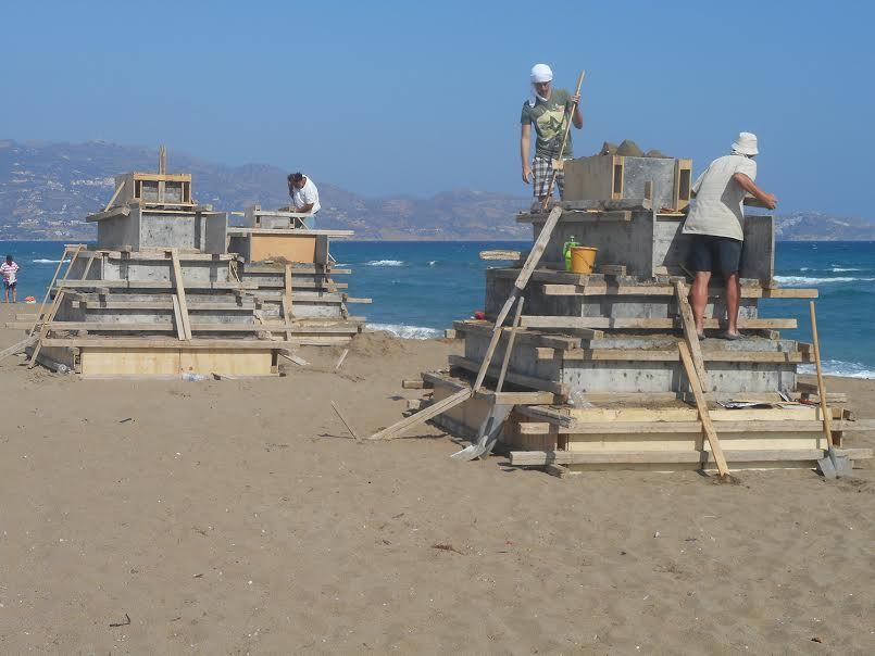 Ο Μανώλης Χαρκούτσης ο Ουκρανός πανεπιστημιακός καθηγητής Γλυπτικής Yuriy Mysko και η διεθνώς αναγνωρισμένη γλύπτρια Lyudmyla Mysko, φιλοτεχνούν στη θέση Ξηροπόταμος – δίπλα στην κεραία της ΕΡΤ – τον Ποσειδώνα να φυσάει ένα πλεούμενο, μια Σειρήνα και ένα χταπόδι.