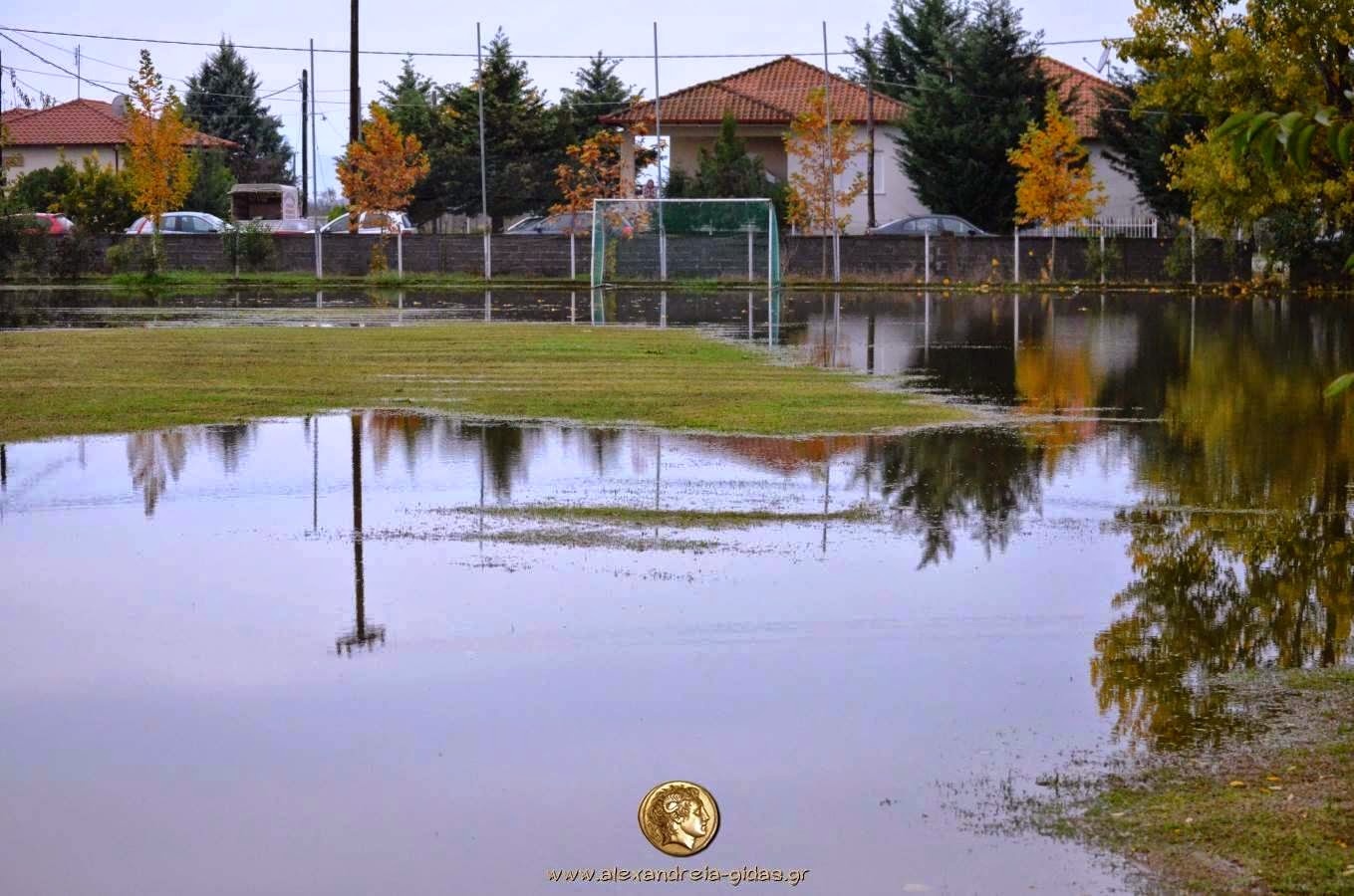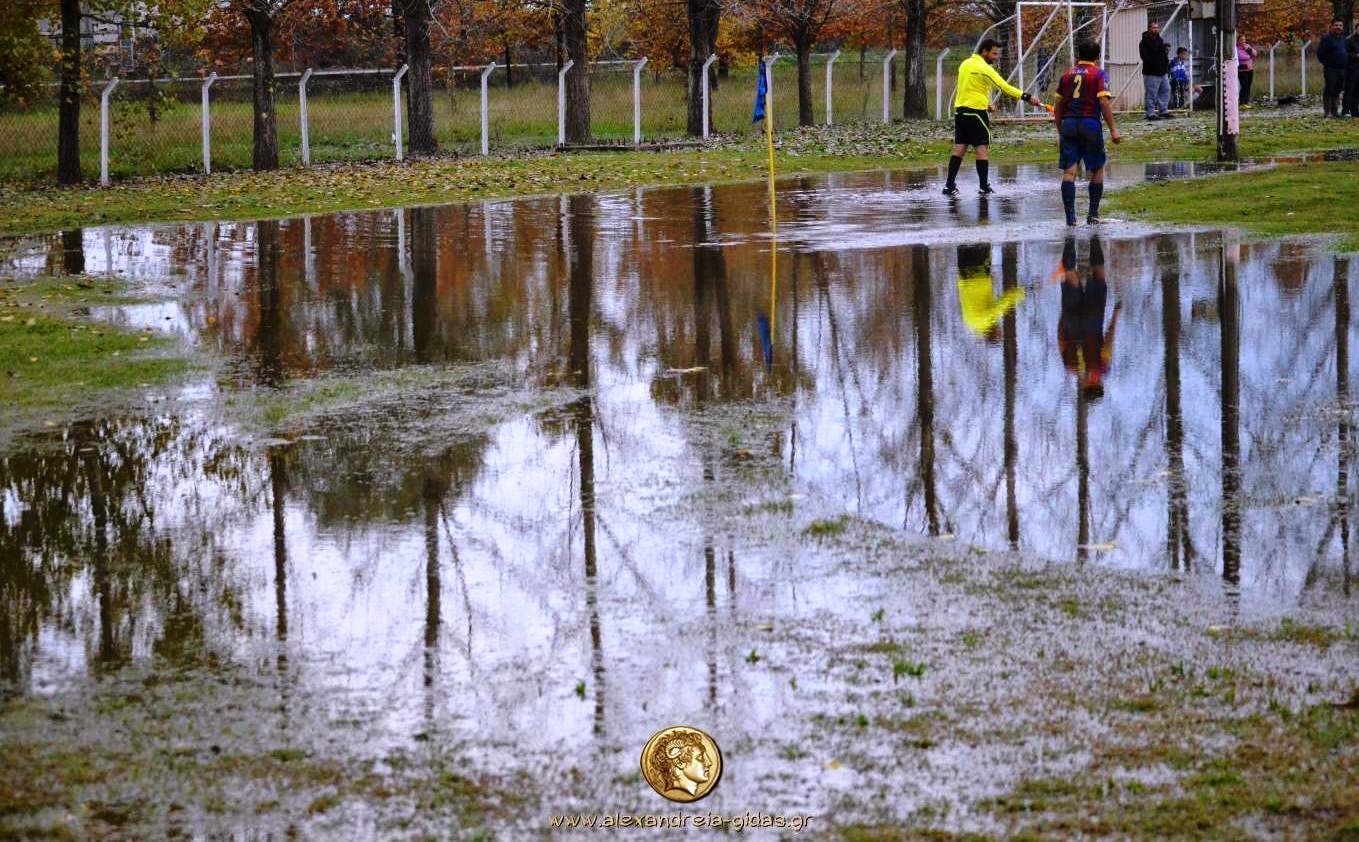 Όνομα και πράγμα το γήπεδο Νησίου, στην Ημαθία, όπου πραγματοποιήθηκε τελικά ο αγώνας Νησιακός – Άραχος, αφού το γήπεδο έμοιαζε περισσότερο με πισίνα...