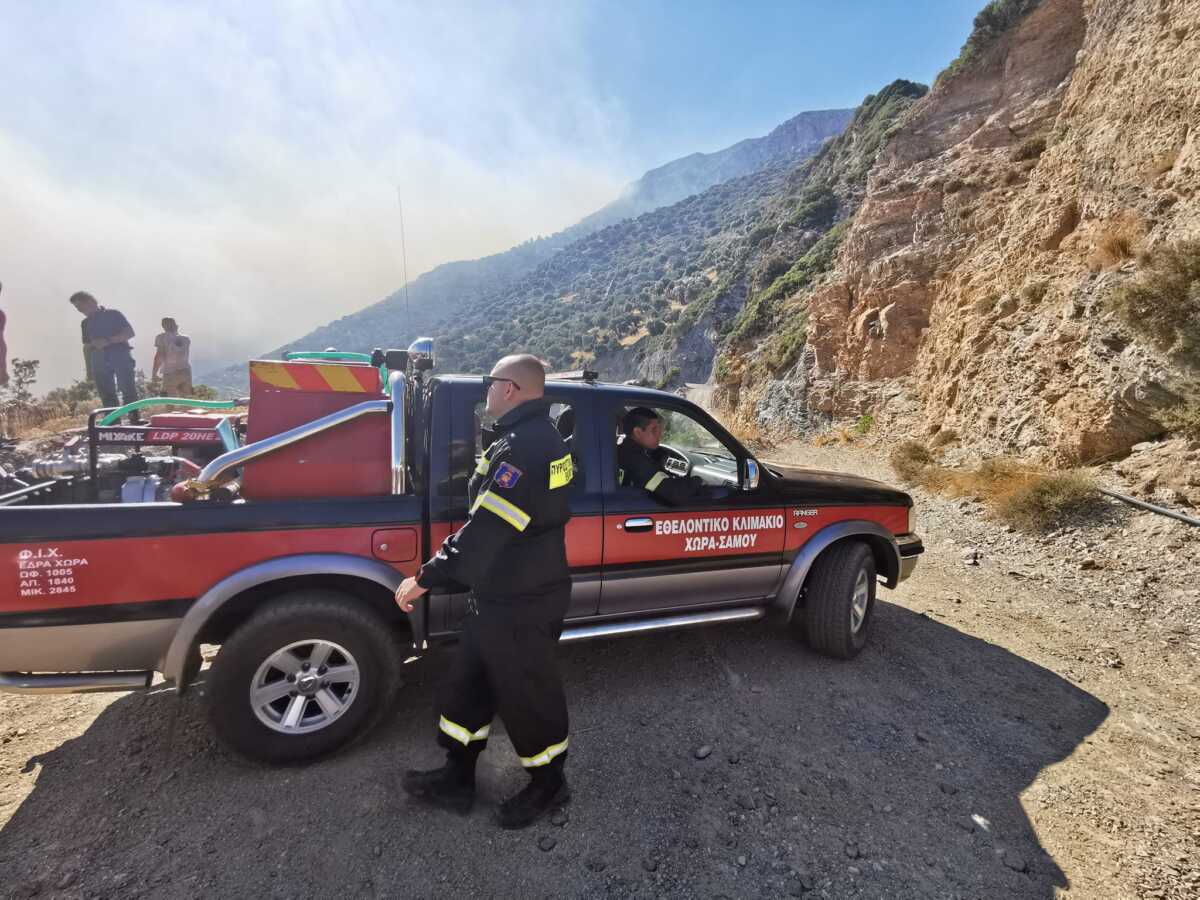 Οι άνεμοι που πνέουν στη Σάμο είναι έντασης 6 μποφόρ και σύμφωνα με το Σταθμό Αιγαίου της ΕΡΤ καθιστά δύσκολο το έργο της κατάσβεσης και επικίνδυνη την πορεία της φωτιάς.