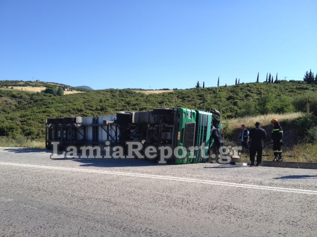 Η νταλίκα ψυγείο που μετέφερε παγωτά, ξεκίνησε το πρωί από Αθήνα για Τρίκαλα. Λίγο μετά τη Λαμία, στο δρόμο προς Δομοκό, σε μια στροφή κοντά στη διασταύρωση της Δίβρης, προφανώς από μετατόπιση φορτίου, το πίσω μέρος της νταλίκας δίπλωσε και παρά τις προσπάθειες του οδηγού, τελικά ανετράπη και βρέθηκε εκτός δρόμου, όπως βλέπετε στις φωτογραφίες του lamiareport.gr…