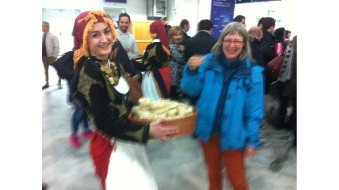 Τους τουρίστες υποδέχτηκαν στο αεροδρόμιο «Νίκος Καζαντζάκης» στελέχη της Περιφέρειας Κρήτης. Κορίτσια του Λυκείου Ελληνίδων Ηρακλείου, που ήταν ντυμένα με κρητικές παραδοσιακές φορεσιές, τους προσέφεραν παραδοσιακά γλυκίσματα και τσικουδιά.