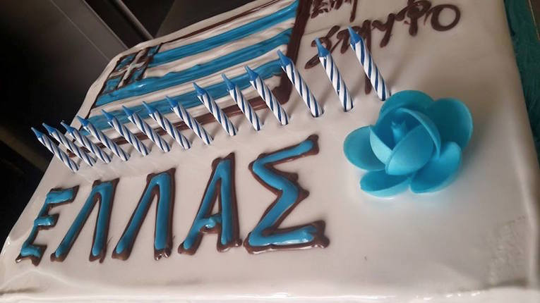 Σμαρνάκης. Δημιούργησε μια τούρτα στο πνεύμα της ημέρας, με την γαλανόλευκη στο σχέδιο και αρκετά κεράκια, συμβολικά για την 194η επέτειο…