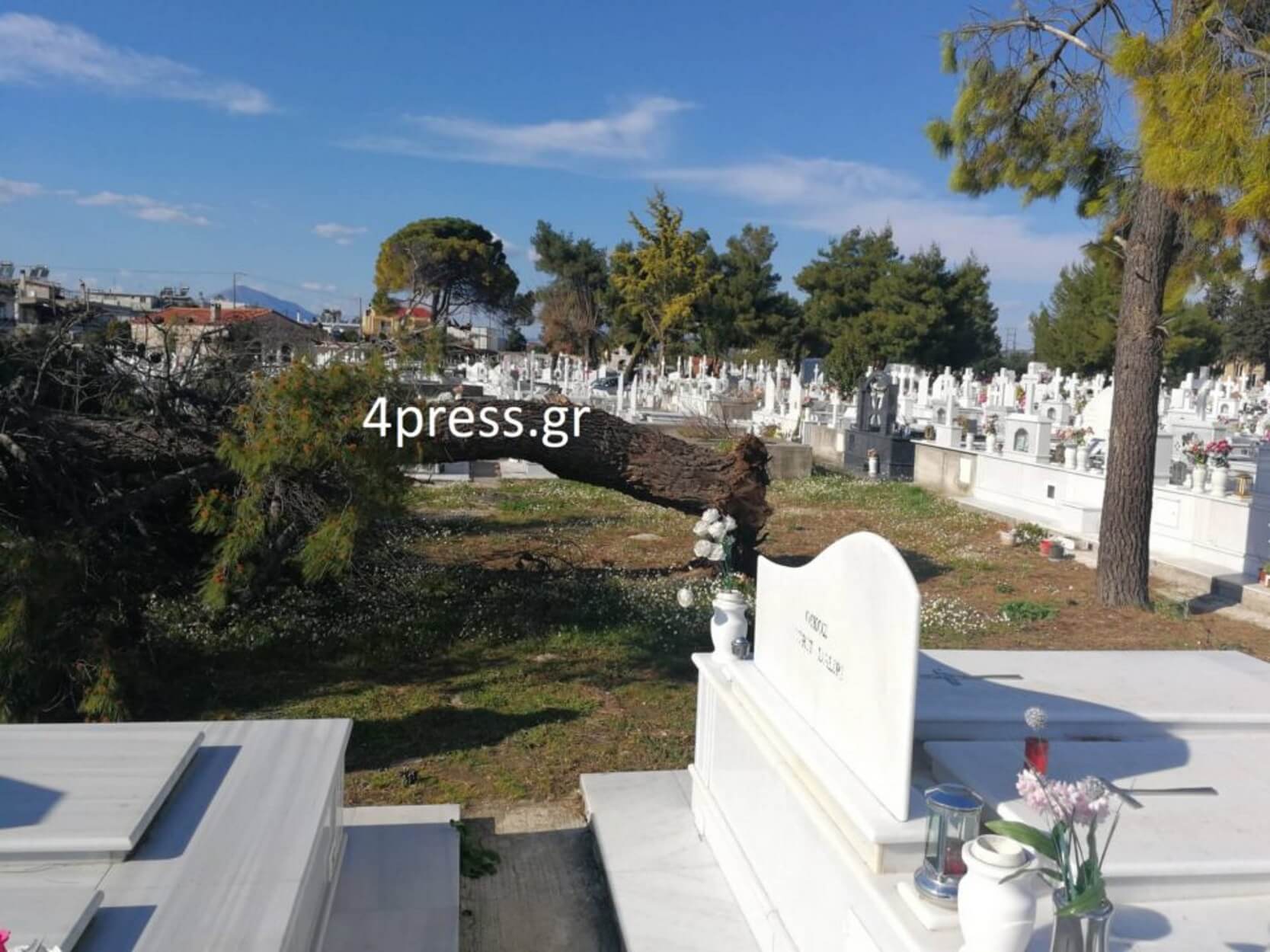 Το δέντρο ξεριζώθηκε και έπεσε ανάμεσα στα μνήματα…