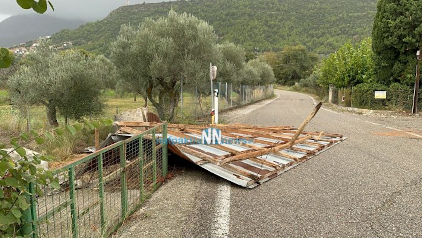 Στέγη αποθήκης αποκολλήθηκε λόγω των ισχυρών ανέμων που πνέουν στη Ναυπακτία και στην περιοχή Τρίκορφο, την ώρα που έχει ξεκινήσει η επέλαση της κακοκαιρίας στη χώρα μας.