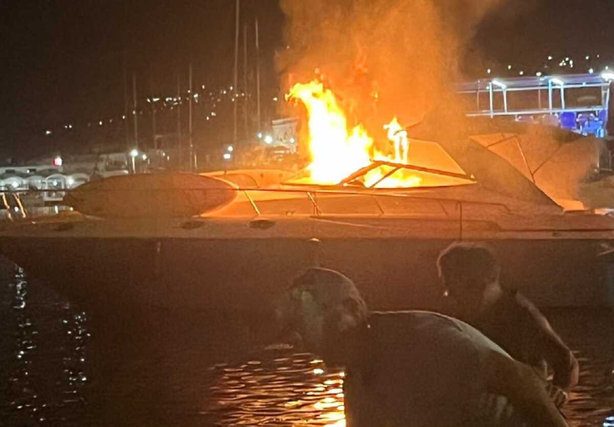 Φωτιά ξέσπασε σε σκάφος στο λιμάνι στο Αργοστόλι της Κεφαλονιάς το βράδυ της Τρίτης (20/08/2024).
