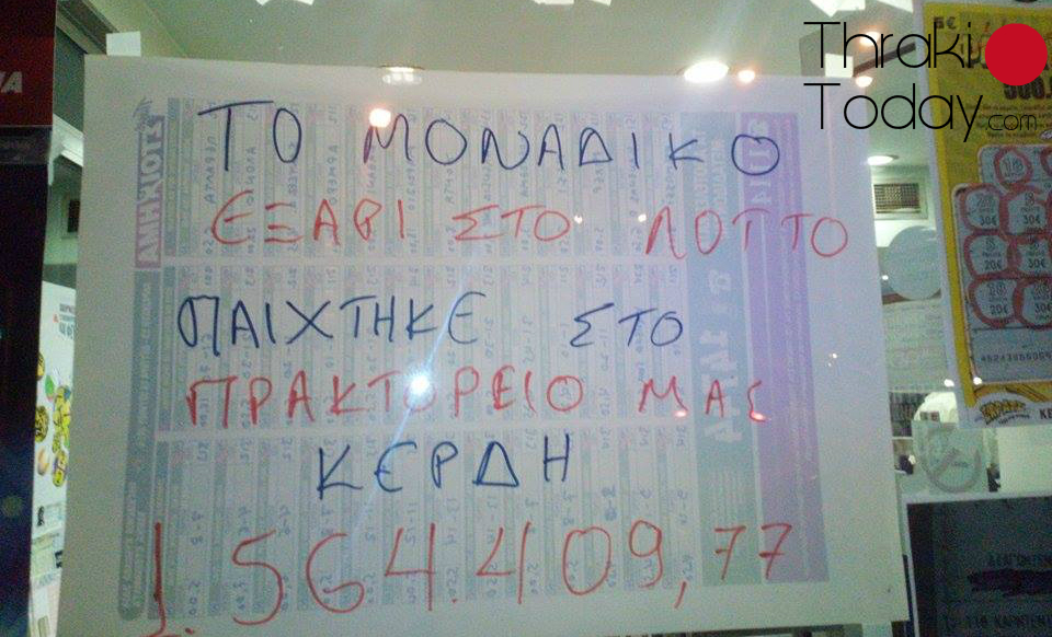 Ο ιδιοκτήτης του Πρακτορείου, όπως άλλωστε συνηθίζεται, τοποθέτησε στην είσοδο του καταστήματος μια ενημερωτική αφίσα που κάνει γνωστό το γεγονός ενώ μέχρι στιγμής δεν έχει γίνει γνωστό το όνομα του μεγάλου τυχερού.