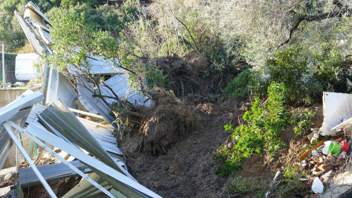 Εκεί βρίσκονταν ένα λυόμενο, το οποίο αυτήν την περίοδο δεν κατοικείται, αλλά αποτελεί την παραθεριστική κατοικία οικογένειας Λαρισαίου. Μέρος της πλαγιάς κατέρρευσε και το οίκημα συμπαρασύρθηκε περισσότερο από δέκα μέτρα και έπεσε μέσα στο ρέμα.