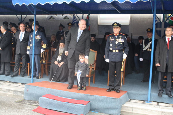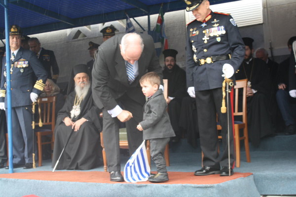 Σε μία μη αναμενόμενη κίνησή του ο υφυπουργός κατέβηκε από την εξέδρα, διέσχισε το δρόμο και κατευθύνθηκε απέναντι στην Κεντρική Πλατεία. Εκεί εντόπισε έναν μπόμπιρα, ο οποίος κρατούσε στα χέρια του την ελληνική σημαία. Ο κ. Κουίκ ευγενικά ζήτησε από τους γονείς και τους συγγενείς να πάρει τον μικρό μαζί του στην εξέδρα…