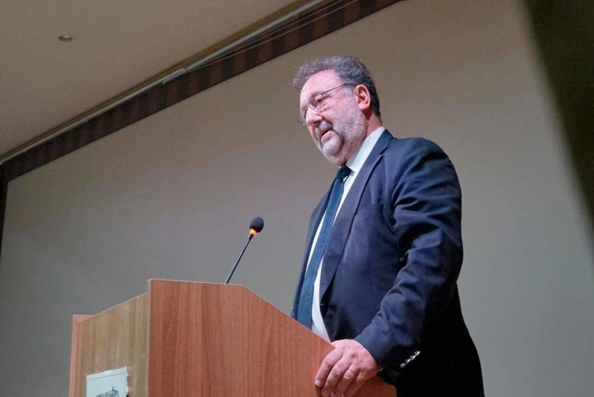 Στην διάρκεια της ομιλίας έκανε την εμφάνιση της μια γυναίκα ουρλιάζοντας διαμαρτυρόμενη για την Μακεδονία, την οποία απομάκρυνε άνθρωπος της ασφάλειας του υπουργού.