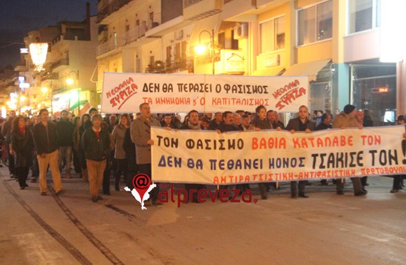 Οπως γράφει το atpreveza, οι διαδηλωτές παρέμειναν εκεί για αρκετή ώρα, με τα αντιφασιστικά συνθήματά τους να δονούν την ατμόσφαιρα, ενώ η Αστυνομία είχε δημιουργήσει φραγμό, παρατάσσοντας άνδρες της με κράνη και ασπίδες, καθώς και δύο κλούβες.