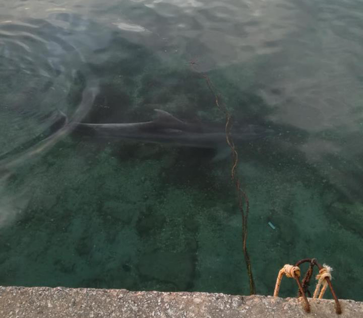 Το σημείο γέμισε από κόσμο που έσπευσε να τραβήξει τις εικόνες. Το δελφίνι γύριζε στο σημείο και λίγο αργότερα επέστρεψε στα ανοιχτά.
