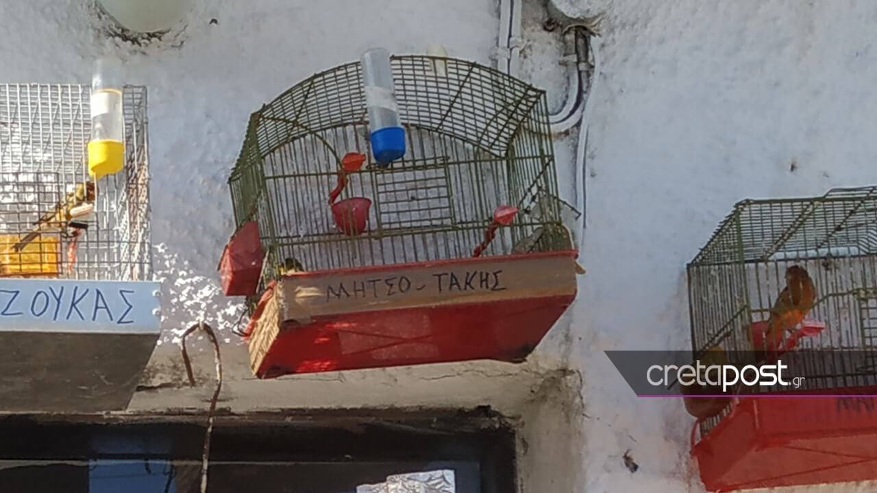 Μάλιστα, στον τοίχο του ο Ηρακλειώτης έχει βάλει ένα άλλο κλουβί στην κορυφή της πόρτας του, που φέρει το όνομα «Μητσο-τάκης»…