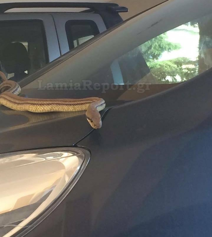 Πανικός σε πυλωτή στη Λαμία – Βρήκαν φίδι πάνω στο καπό του αυτοκινήτου τους… ΦΩΤΟ