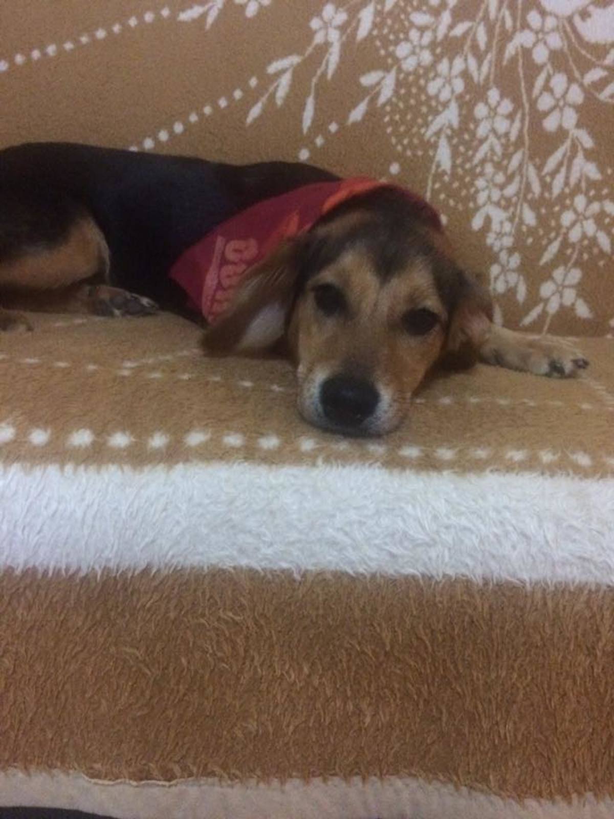 Η σκυλίτσα βρέθηκα παρατημένη με ένα σύρμα δεμένο σφικτά στον λαιμό της ενώ έφερε και σοβαρό τραύμα στο πόδι της σε σημείο που φαινόταν το οστό της.