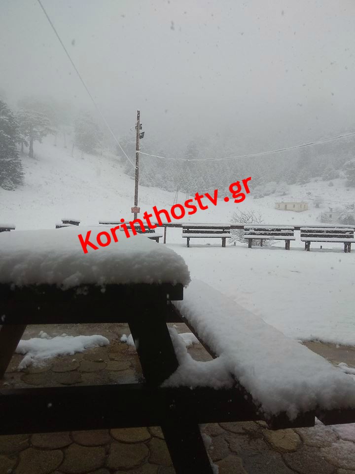 Έπεσαν τα πρώτα χιόνια στη Ζήρεια και στην Καρυά Κορινθιας