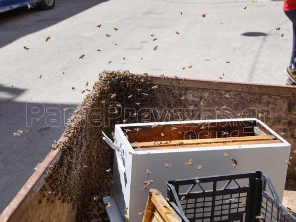Μάλιστα για αρκετή ώρα πετούσε τόσο χαμηλά που οι μέλισσες γίνονταν ένα με τον κόσμο που περνούσε από το σημείο μέχρι που τελικά κατέληξε σε ένα τρέιλερ. Ειδοποιήθηκε μελισσοκόμος ο οποίος και μετά από λίγη ώρα κατάφερε να συγκεντρώσει το σμήνος μέσα στην κυψέλη.