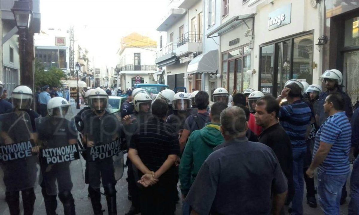 Τοπικοί επιχειρηματίες, μέλη του ΣΑΟΡ αλλά και απλοί πολίτες έκαναν την εμφάνιση τους στο μέρος που στεγάζεται η τοπική επιχείρηση και προσπάθησαν να σπάσουν τον κλοιό τον ΜΑΤ και να αποτρέψουν τη σφράγιση του καταστήματος με αποτέλεσμα να σημειωθούν επεισόδια.
