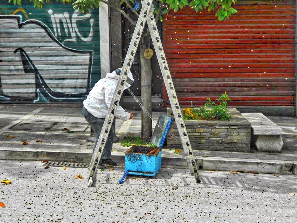 Αμέσως ειδοποιήθηκε η αστυνομία,η οποία με τη σειρά της επιστράτευσε έναν μελισσοκόμο,