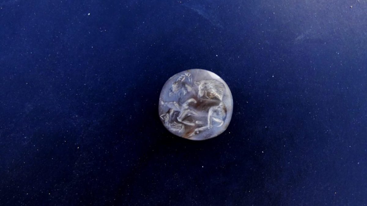 «Στον πρώτο, παριστάνεται αίγαγρος που δέχεται επίθεση από δύο λύκους, στον δεύτερο, ελάφι σε συνεστραμμένη στάση. Ιδιαίτερο ενδιαφέρον, όμως, παρουσιάζει ο τρίτος σφραγιδόλιθος, από σάρδιο, στον οποίο παριστάνεται όρθια μιξογενής δαιμονική μορφή (Minoangenius) που μεταφέρει στους ώμους ένα νεκρό ελάφι. Το ίδιο ακριβώς θέμα συναντάται σε σφραγιδόλιθο από την Κρήτη και σε ελεφάντινο πλακίδιο από τη Θήβα», αναφέρει στην ανακοίνωσή του το ΥΠΠΟΑ.