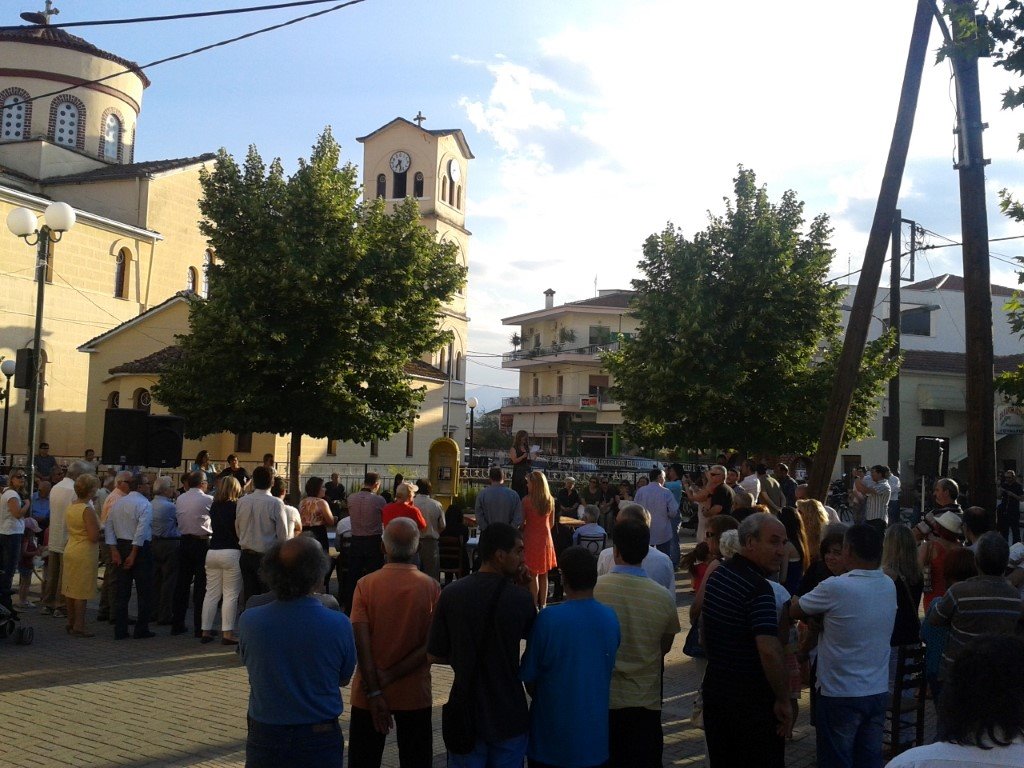 Το απόγευμα του Σαββάτου, σε μια σεμνή τελετή, με τους ανθρώπους του Πολιτιστικού Συλλόγου της Αγίας Μονής να εκφράζουν τις ευχαριστίες τους, τόσο προς τη σύζυγο του Δημήτρη Μητροπάνου, Βένια, όσο και στην αδελφή του Σμαρώ και τη κόρη του Αναστασία, που ήρθαν ειδικά για την εκδήλωση στα Τρίκαλα, έγινε η επίσημη ονομασία της πλατείας σε «πλατεία Δημήτρη Μητροπάνου». Ακολούθησε μεγάλη συναυλία με γνωστούς καλλιτέχνες.