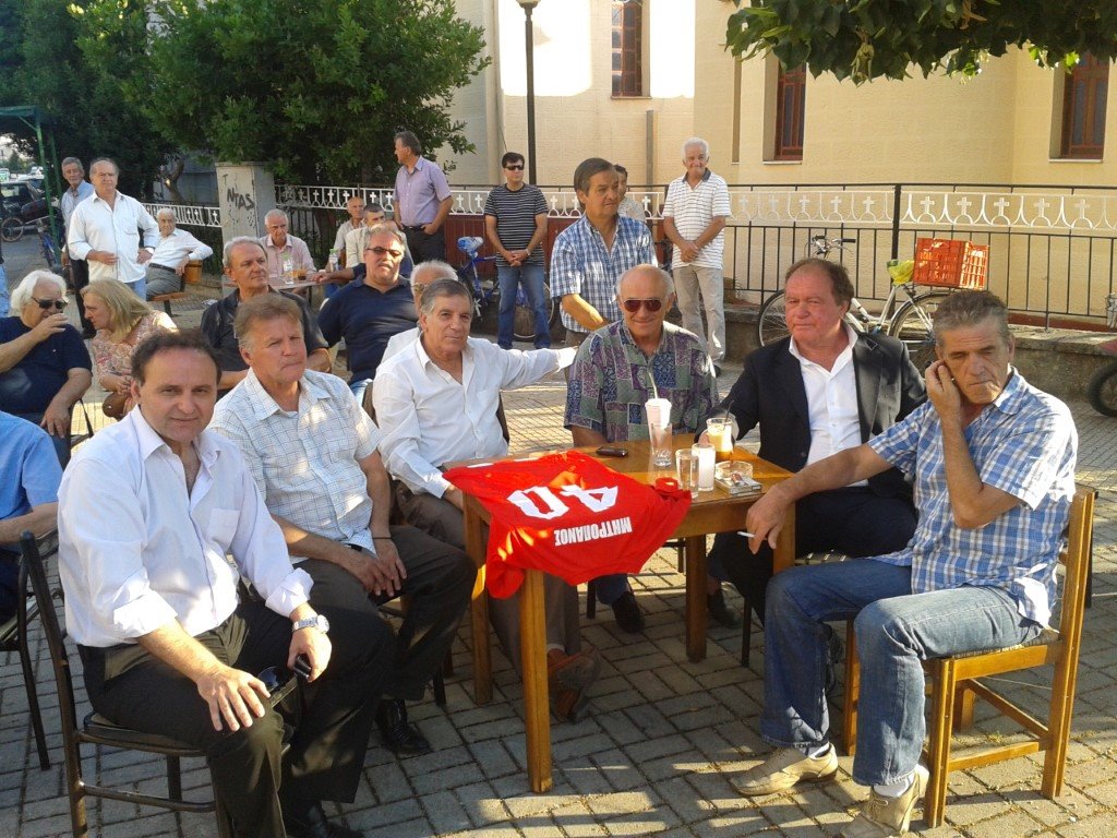 Παρών στην εκδήλωση η παλιά δόξα του Ολυμπιακού, της ομάδας που αγάπησε ο Δημήτρης Μητροπάνος, Παναγιώτης Κελεσίδης με φανέλα που έφερε το όνομα του σπουδαίου Τρικαλινού ερμηνευτή.