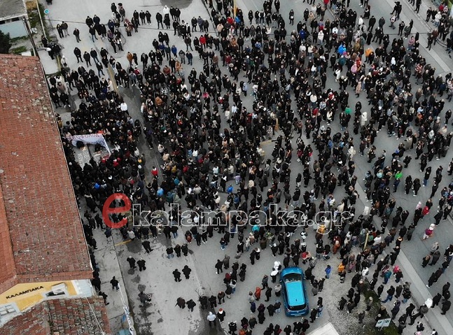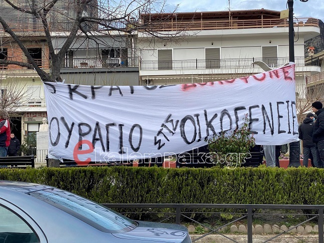 Λίγο μετά τις 18:00 το απόγευμα εκατοντάδες άτομα, όλων των ηλικιών, άρχισαν να συγκεντρώνονται στην κεντρική πλατεία της Καλαμπάκας ανταποκρινόμενοι σε ένα κάλεσμα διαμαρτυρίας για το τραγικό σιδηροδρομικό δυστύχημα στα Τέμπη, το οποίο κυκλοφόρησε στα κοινωνικά μέσα δικτύωσης.