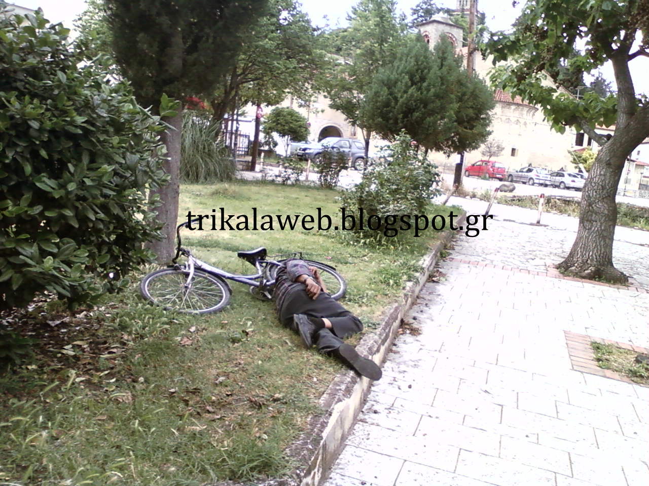 Ένα πρωτότυπο τρόπο βρήκε ένας κουρασμένος ποδηλάτης να πάρει έναν υπνάκο πίσω από την εκκλησία του Αγίου Νικολάου στα Τρίκαλα.