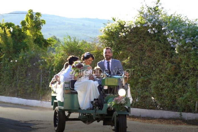 Τις καλύτερες εντυπώσεις άφησε στους καλεσμένους του ζευγάρι από τα Χανιά, το οποίο παντρεύτηκε το Σάββατο 16 Ιουλίου και πήγε στην εκκλησία με ένα παλιό τρίκυκλο, έχοντας μαζί και τα παρανυφάκια.
