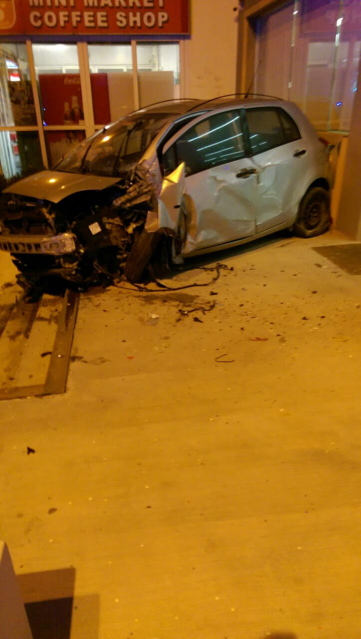 Απίστευτο τροχαίο στην οδό Εθνάρχου Βενιζέλου, στην Σούδααργά τη νύχτα. Ι.Χ αυτοκίνητο, ξέφυγε από την πορεία του ανέβηκε υπερυψωμένα σκαλοπάτια και κατέληξε στην είσοδο φαρμακείου. Για καλή του τύχη ο οδηγός του οχήματος, που προφανώς έχασε το έλεγχο του αυτοκινήτου για άγνωστο λόγο δεν τραυματίστηκε σοβαρά.