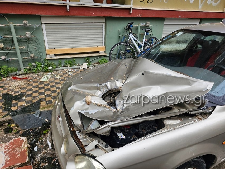 Από θαύμα δεν υπήρξαν θύματα στα Χανιά, όταν ένα μεγάλο κομμάτι μπαλκονιού έσπασε και έπεσε πάνω σε αυτοκίνητο.