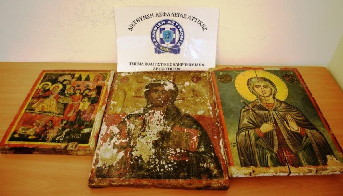 Σε έρευνες που πραγματοποιήθηκαν σε χώρους, καθώς και στα σπίτια των συλληφθέντων βρέθηκαν και κατασχέθηκαν, μία ξύλινη εικόνα που απεικονίζει την Γέννηση της Θεοτόκου διαστάσεων 41Χ32 εκ., μεταβυζαντινής τεχνοτροπίας, μία ξύλινη εικόνα που απεικονίζει τον Ιησού Χριστό με Αρχιερατική ενδυμασία διαστάσεων 52Χ41 εκ., χρονολογούμενη στον 18ο αιώνα, μεταβυζαντινής τεχνοτροπίας και μία ξύλινη εικόνα που απεικονίζει την “Παναγία δεόμενη” διαστάσεων 50Χ39 εκ., μεταβυζαντινής τεχνοτροπίας.
