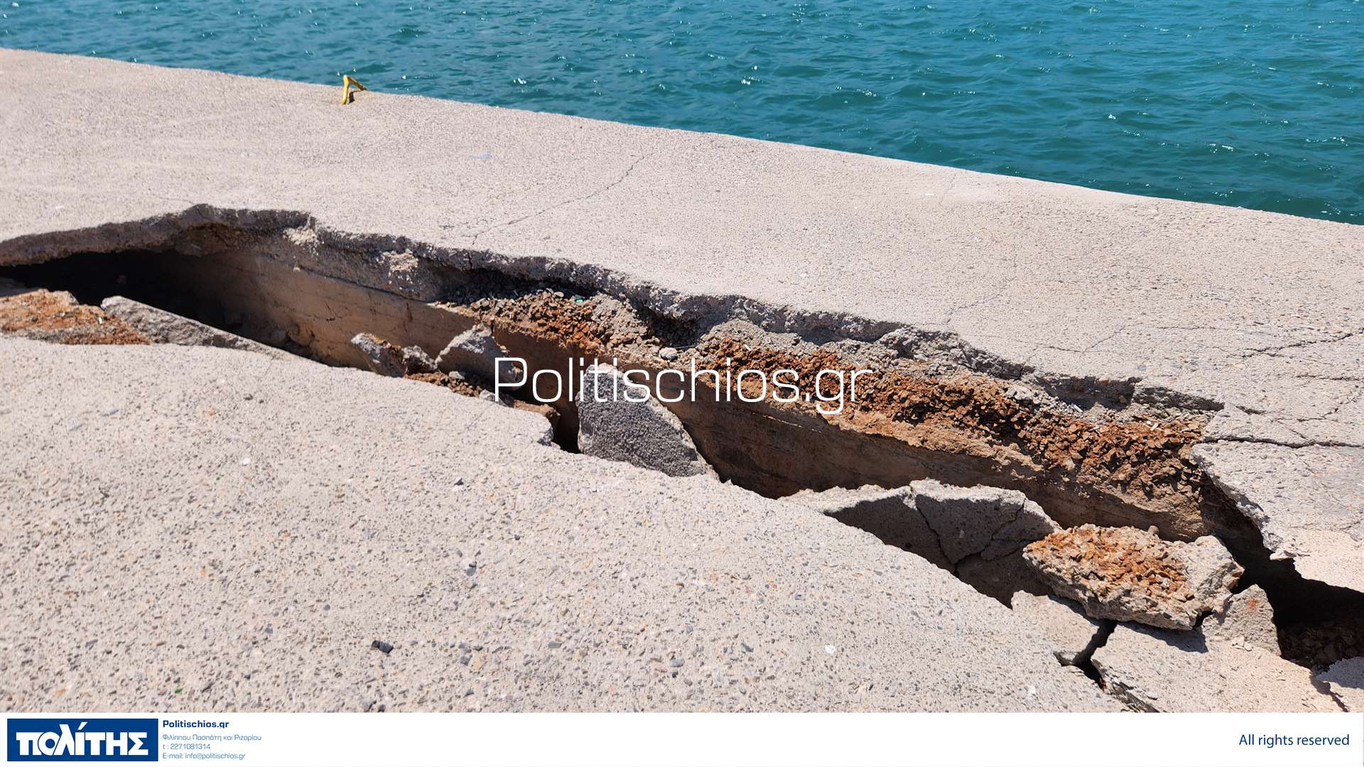 Το πλοίο κατά την είσοδό του στον λιμένα, ακούμπησε ελαφρά πάνω στον λιμενοβραχίονα με αποτέλεσμα οι πλάκες στην χερσαία ζώνη να αποκολληθούν και τα βράχια να μετακινηθούν προκαλώντας σημαντικές ρηγματώσεις.
