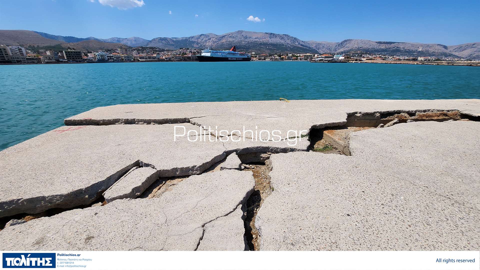 Χίος: Εικόνες μετά την πρόσκρουση του πλοίου «Νήσος Σάμος» στο λιμάνι