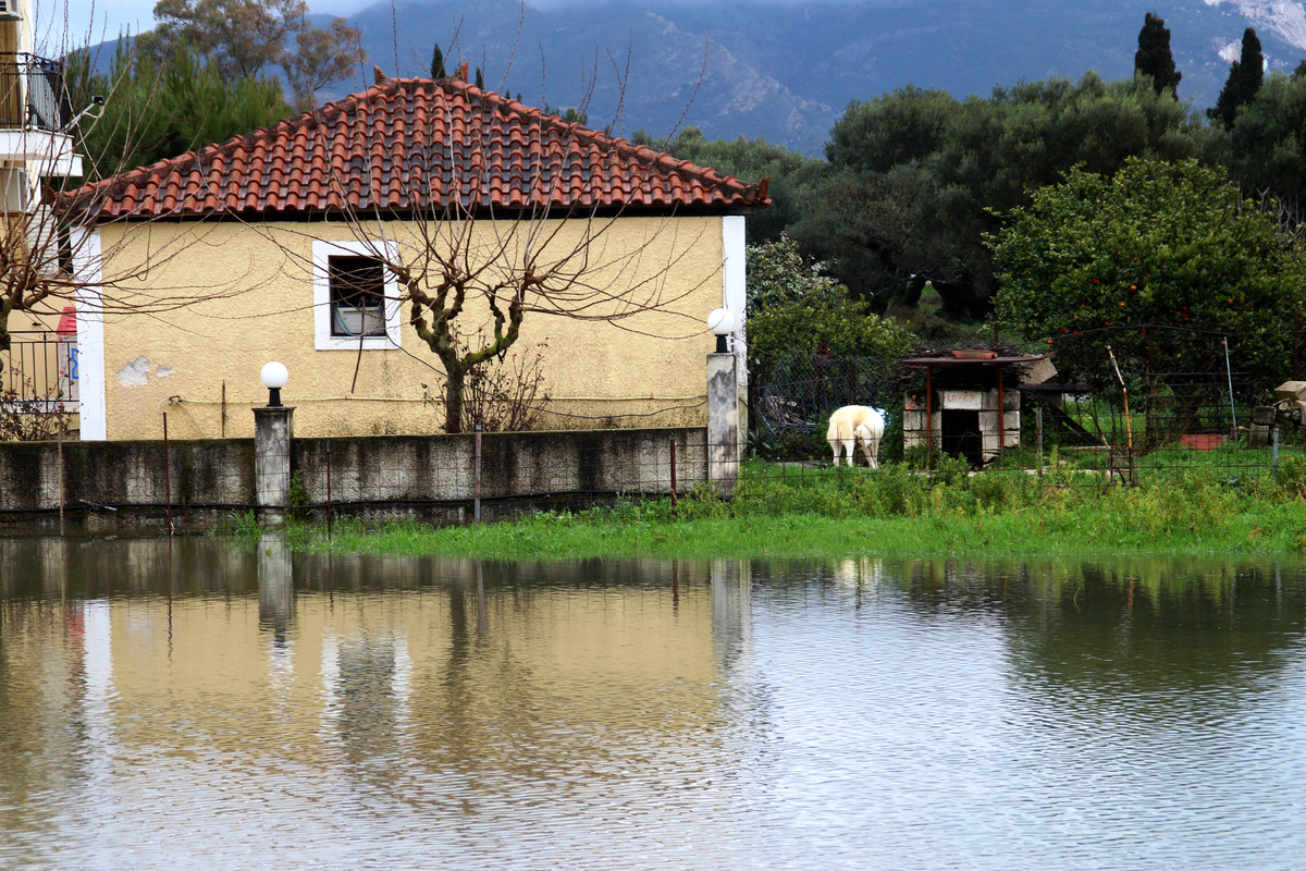Μεγάλες εκτάσεις γης αλλά και δρόμοι «εξαφανίστηκαν» καθώς το ύψος του νερού έφτασε σε πολύ υψηλά επίπεδα, με αποτέλεσμα να διακοπεί η κυκλοφορία των αυτοκινήτων σε αρκετά χωριά του νησιού.
