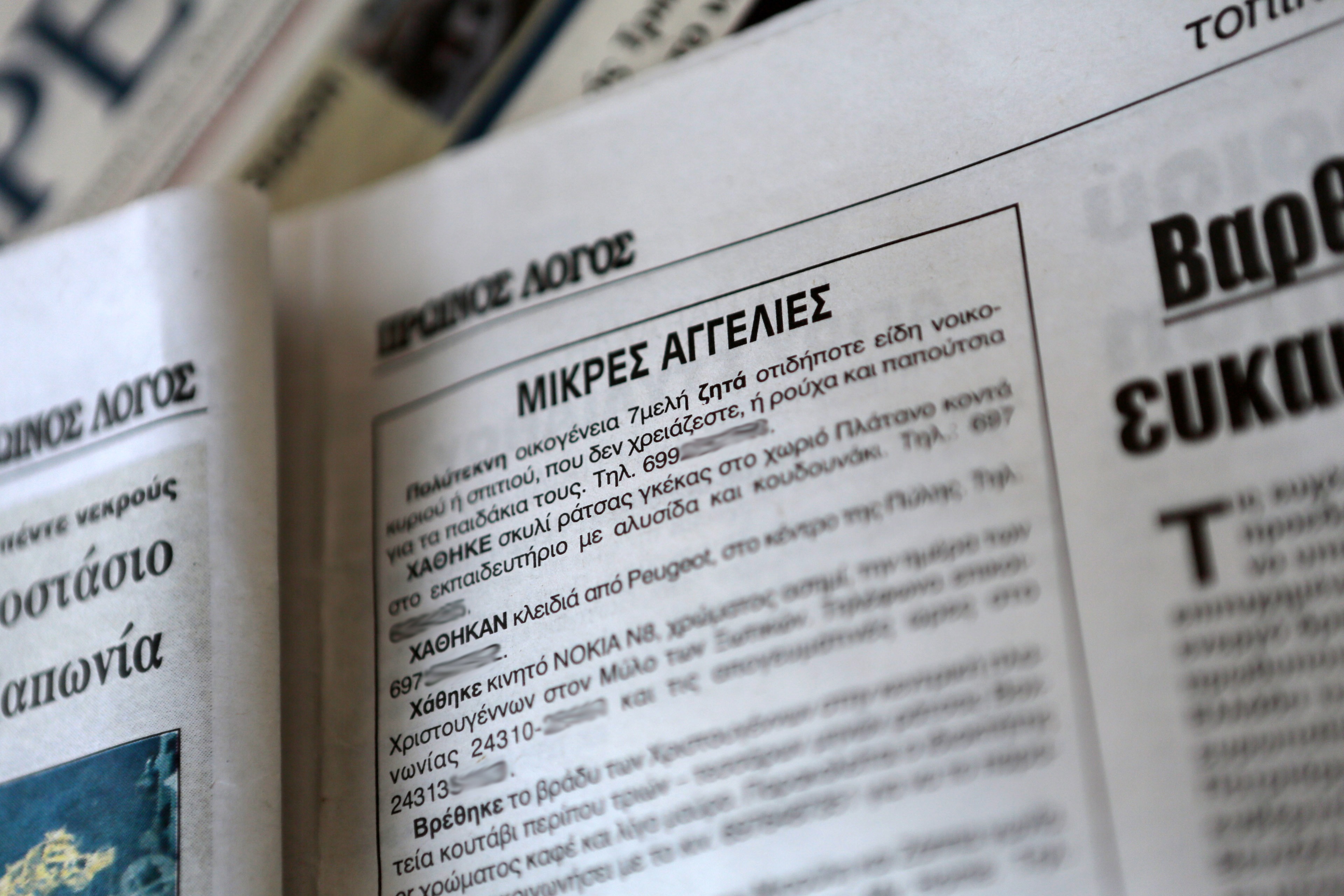Μια αγγελία σε τοπική εφημερίδα των Τρικάλων, μια έκκληση για βοήθεια από μια οικογένεια, όπως τόσες άλλες στην Ελλάδα της κρίσης...