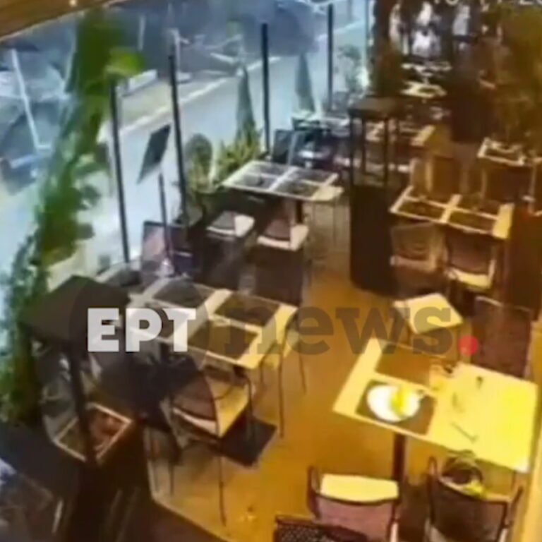 Παρασύρθηκαν μάλιστα αντικείμενα που βρίσκονταν μέσα στο εστιατορίου, με τους πελάτες να τρέχουν αναστατωμένοι.