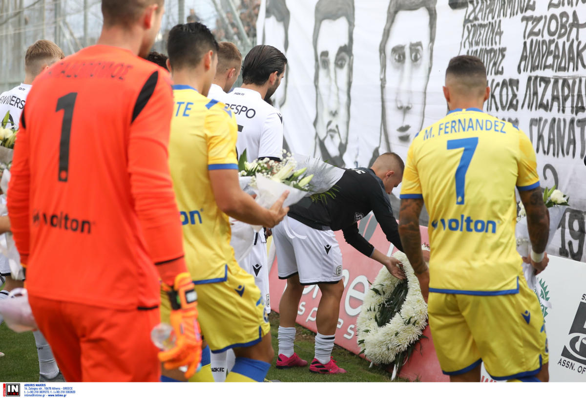Με μπλουζάκια με τα ονόματα των 6 αδικοχαμένων οπαδών από την προ 20ετίας τραγωδία των Τεμπών, παρατάχθηκε η ενδεκάδα του ΠΑΟΚ στο “Θ. Κολοκοτρώνης”, στην αναμέτρηση του με τον Αστέρα Τρίπολης.