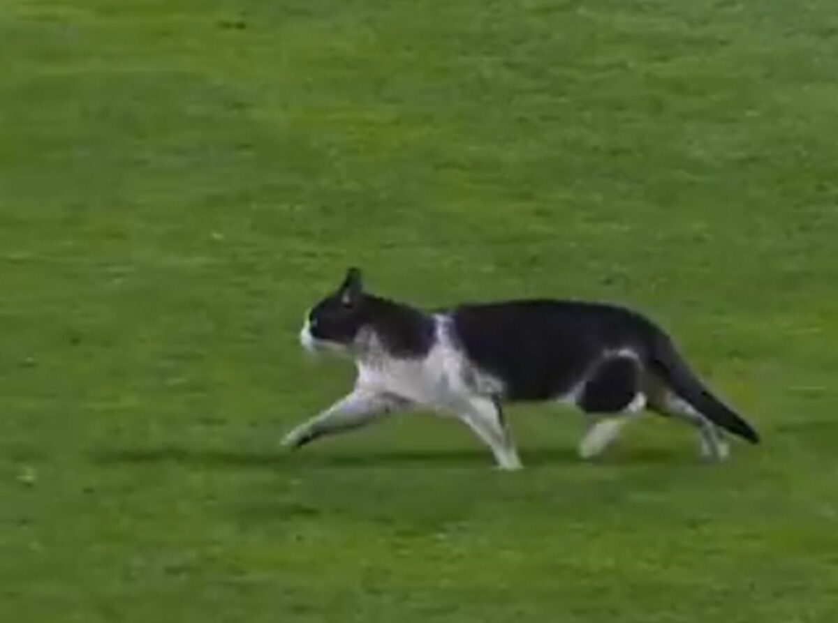 Η γάτα ολοκλήρωσε πάντως τη βόλτα της στο γήπεδο και στη συνέχεια μεταφέρθηκε εκτός αυτού, με τον αγώνα να ολοκλρώνεται χωρίς άλλες… παρεμβολές στο υπόλοιπο του χρόνου.