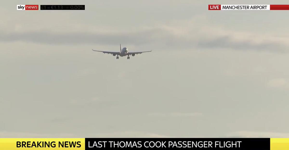 Την προσγείωση της τελευταίας πτήσης της Thomas Cook στο αεροδρόμιο του Μάντσεστερ μετά την πτώχευση του ταξιδιωτικού κολοσσού κατέγραψε το SkyNews.