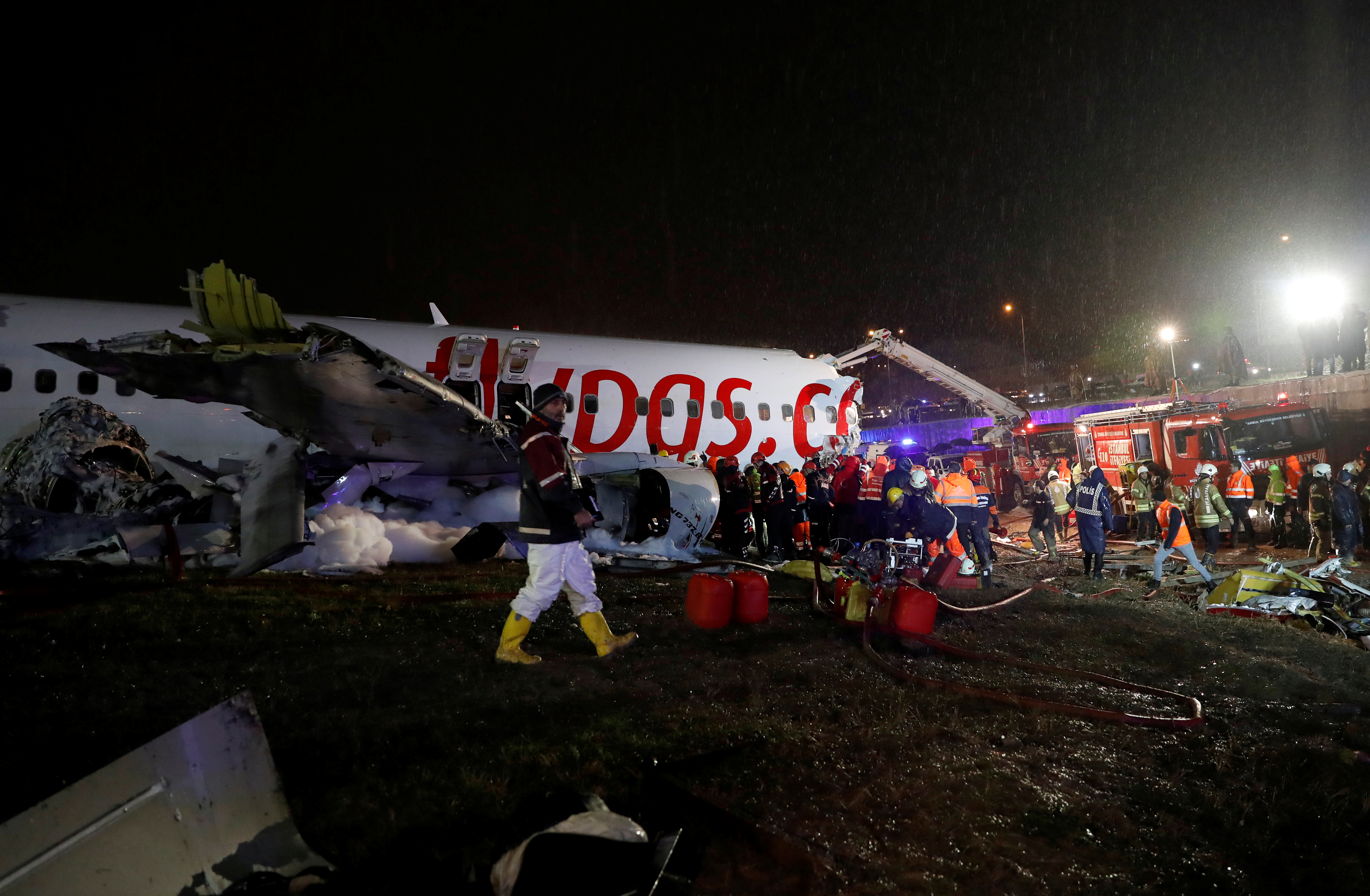 Δεκάδες ασθενοφόρα έσπευσαν στο σημείο του ατυχήματος. Σύμφωνα με τον υπουργό Μεταφορών στην Τουρκία ορισμένοι επιβάτες εγκλωβίστηκαν στο κουφάρι του αεροσκάφους.